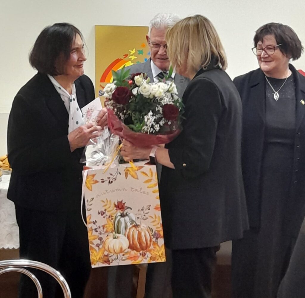 Nie zapomniano też o życzeniach dla Pani Jadwigi Kotkowskiej z okazji urodzin. Zostały też wręczone podziękowania i wyróżnienia przygotowane przez Świętokrzyską Radę Spółdzielni Uczniowskich. Wszyscy uczestniczy spotkania otrzymali także słodkie upominki. Wszystkich zaproszono na zakończenie obchodów 125 lecia spółdzielczości na ziemiach polskich do Wadowic. Następne spotkanie zaproponowano zorganizować jeszcze przed końcem roku szkolnego.